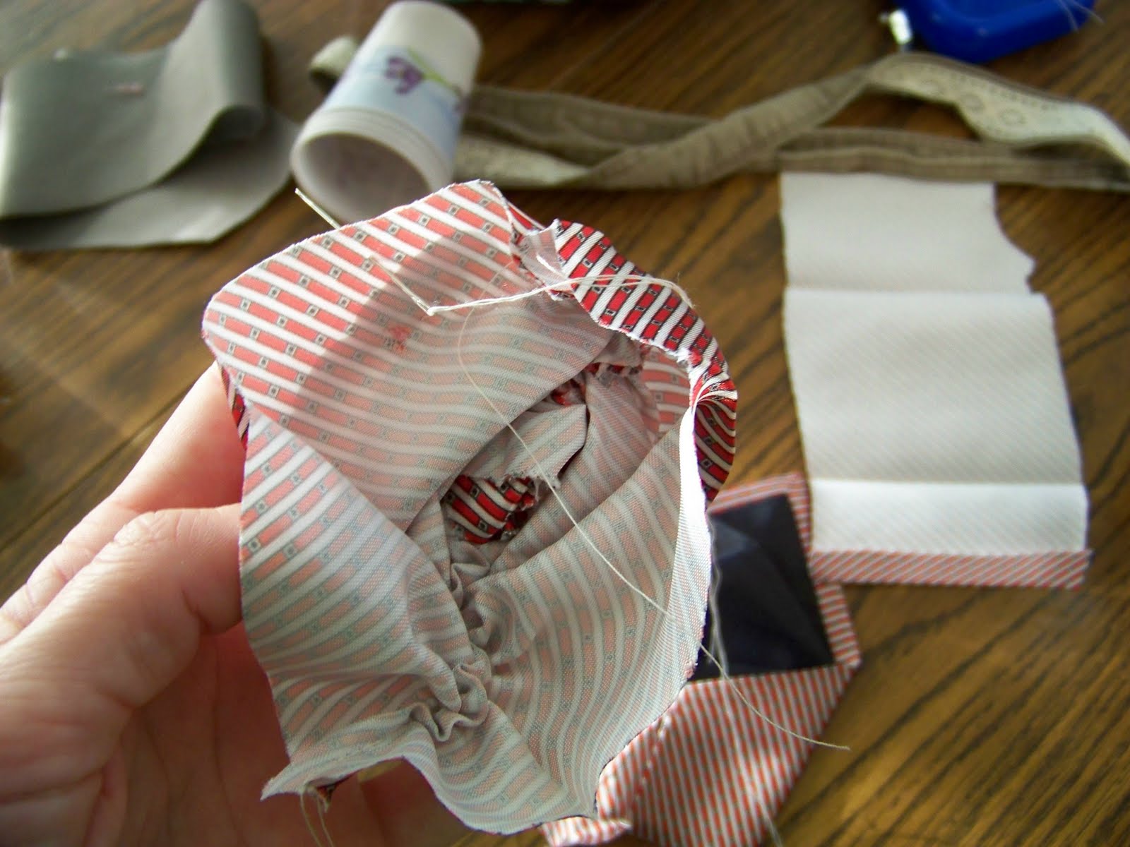 Cut your tie- to the length you would like... and keep the fAT end to make your rose.